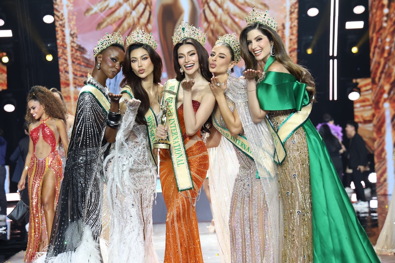 สำหรับตำแหน่งรองอันดับ 2 ได้แก่ มิสแกรนด์สเปน ไอทาน่า แคโรไลนา ฮิเมเนซ (AITANA CAROLINA JIMENEZ) ตำแหน่งรองอันดับ 3 ได้แก่ มิสแกรนด์กาน่า เฟธ มาเรีย พอร์เตอร์ (Faith Maria Porter) ตำแหน่งรองอันดับ 4 ได้แก่ มิสแกรนด์เวเนซุเอลา นาริมาน บัตติคา (NARIMAN BATTIKHA )ตำแหน่งรองอันดับ 5 มี 5 นางงามที่ได้ครองตำแหน่งนี้ได้แก่ มิสแกรนด์โคลอมเบีย ลอร่า รามอส (Laura Ramos) มิสแกรนด์ เช็ครีพับบลิค มาร์เกต้า มอร์วิคโควา((MARKETA MORWICKOVA) มิสแกรนด์ เม็กซิโก มอนต์เซอร์ราท วิลลาลวา (MONTSERRAT VILLALVA) มิสแกรนด์กัวเตมาลา อานา เลนเดิล (Ana Lendl) และ มิสแกรนด์ แทนซาเนีย เบียทริซ อาคยู ท่ามกลางกองเชียร์จากทั่วโลกที่บินตรงมาเชียร์กันแน่น MGI HALL ชั้น 6 ศูนย์การค้า BRAVO BKK พระราม 9 ต่างตื่นตาตื่นใจไปกับโอเพนนิ่งโชว์บนเวทีที่เต็มไปด้วยโปรดักชั่นอลังการ แสง สี เสียง จัดได้ไม่มีขาดตกบกพร่องตามสไตล์ บอสณวัฒน์ ทุ่มงบไม่อั้นเพื่อความสนุกของแฟนนางงาม ตามมาด้วยช็อตประวัติศาสตร์ในรอบชุดราตรี อิงฟ้า วราหะ ขี่ม้ายูนิคอร์นลอยอยู่เหนือผู้ชม บอกได้คำเดียวว่าสะกดทุกสายตาชาวโลกขั้นสุด คอมเมนท์จาก YouTube : Grand TV รัวสนั่น ไม่น่าเชื่อว่าบอสจะเปลี่ยนเวทีนางงามให้กลายเป็นคอนเสิร์ตในพริบตา ก่อนจะได้ประทับใจกับรอบสปีช Stop the war and violence ยุติสงครามและความรุนแรงทุกรูปแบบ ผลการตัดสินและซีนอำลาตำแหน่งของ ซีเจ คริสติน จูเลียน โอเปียซา มิสแกรนด์ อินเตอร์เนชั่นแนล 2024 รวมถึงการประกาศประเทศเจ้าภาพ มิสแกรนด์ อินเตอร์เนชั่นแนล 2026 ที่ ประเทศอินเดีย นั่นเอง